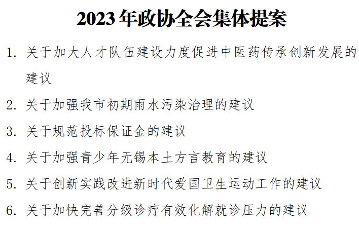 农工党世界杯365体育_Best365官网登录_365体育亚洲官方登录委会向大会提交了《关于加大人才队伍建设力度促进中医药传承创新发展的建议》《关于加强我市初期雨水污染治理的建议》《关于规范投标保证金的建议》《关于加强青少年无锡本土方言教育的建议》《关于创新实践改进新时代爱国卫生运动工作的建议》《关于加快完善分级诊疗有效化解就诊压力的建议》等6件集体提案,紧扣“无锡新实践”核心主题,聚焦“健康无锡”“美丽无锡”工作主线,充分发挥参政议政职责,从不同领域和角度,为奋力谱写“强富美高”新无锡现代化建设新篇章,发出农工声音,贡献农工力量。