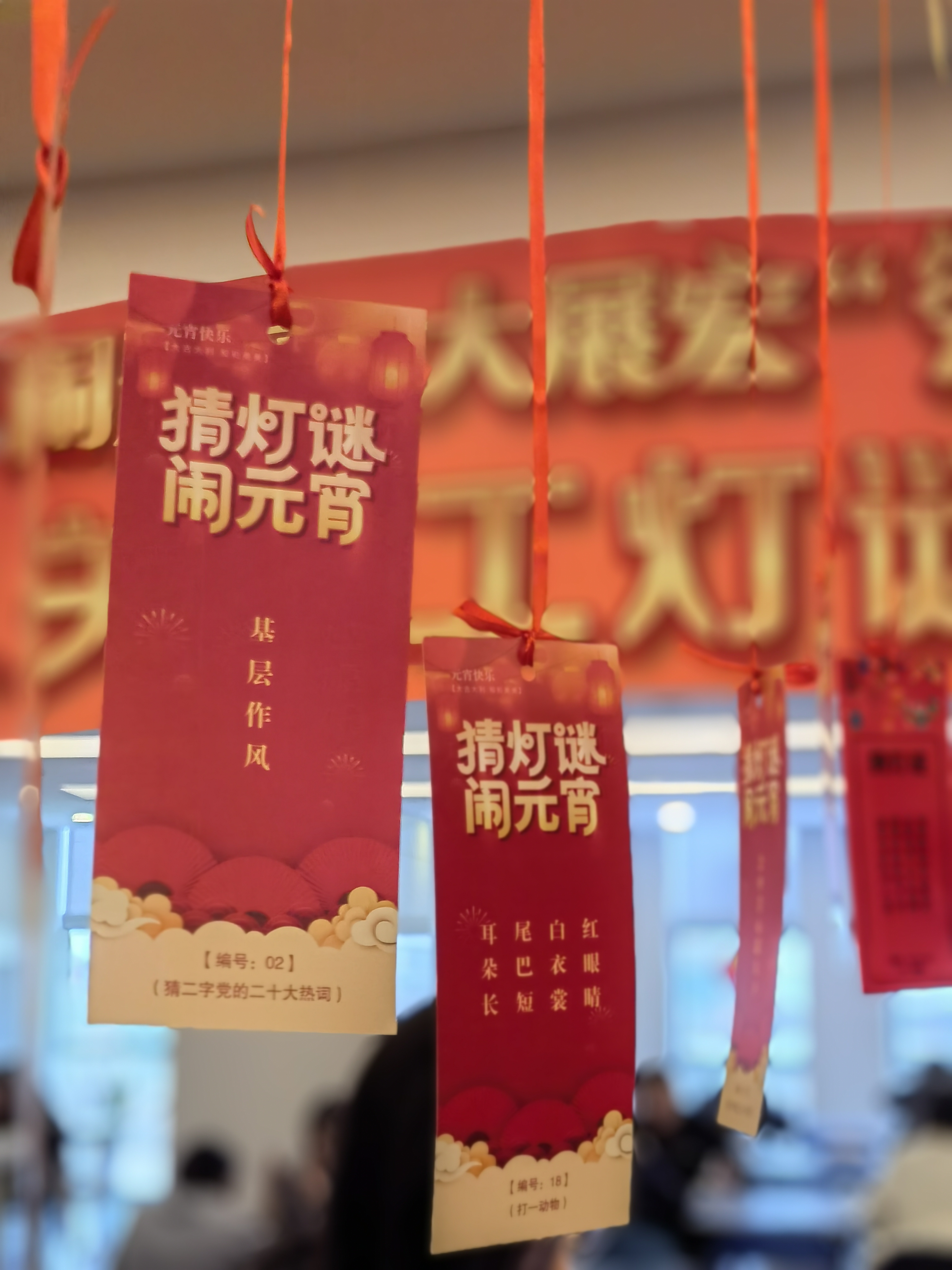 伴随着《闹元宵》歌曲音乐的响起,主持人向现场观众详细介绍了猜灯谜的活动规则,这也意味着活动正式拉开序幕。机关食堂内张灯结彩,谜联轻扬,人头攒动,热闹非凡。活动现场挂满了热闹喜庆、形态多样的灯笼,300余条奇思妙想的灯谜悬挂在其间。灯谜内容涵盖了传统节日习俗、成语典故,也创造性的融入了二十大精神的相关知识。拿到谜题字条后大家纷纷开动“最强大脑”,或驻足凝思,或小声探讨,现场变成了互动交流的“课堂”。活动现场还准备了丰富的奖品,进一步向职工传达来自组织的暖心关怀和新春祝福。